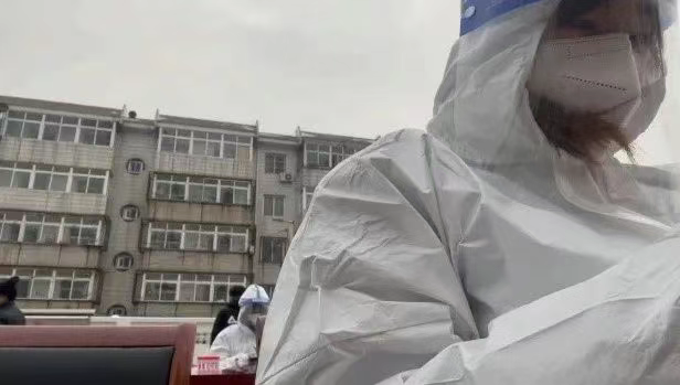 崔志阳:天很冷,一天下来脚都冻麻了。必须戴医护手套,所以点击屏幕的时候不太好操作。防护服穿脱不太方便,所以我们都尽量少喝水少去厕所。