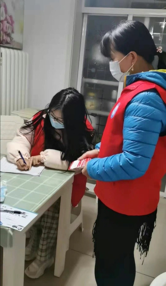 闫娜:最直观感受就是疫情防控期间相关工作人员的辛苦与不易。我们小组负责调查100多户人家。虽说是登记人员的疫苗接种信息,但有好多家庭的成员对自己的疫苗接种时间并不明确,或者是有些人还未下班,这就导致任务完成的较慢。不过值得欣慰的是,我们最后还是在规定时间内完成了任务。