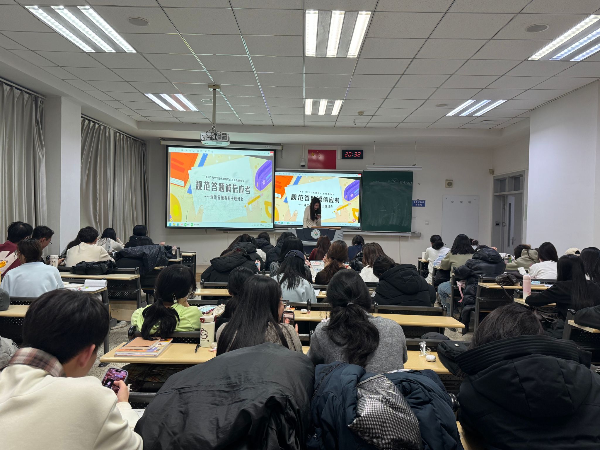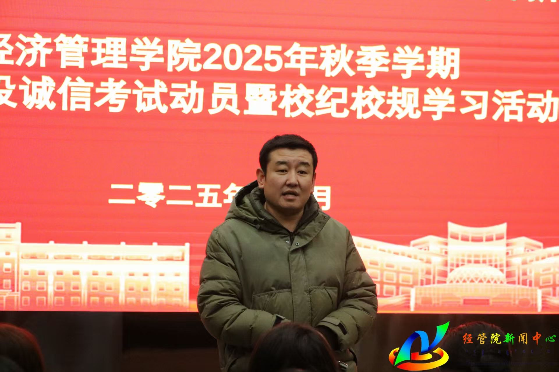 为加强学风建设,创造良好的育人环境,12月17、18日,我院于经管院123召开2025年秋季学期学风建设暨校规校纪学习大会。我院党委组织员苏宁巴乐老师,学生工作办公室潘玉芳、李文政、李俊梅、吴从杰老师出席大会,全体学生干部、各年级班长、团支书共同参会。会后,各班级也在线下召开班会,确保会议内容准确传达。