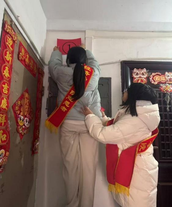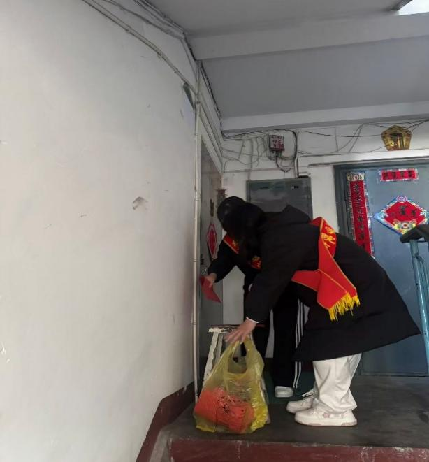 清理工作完成后,志愿者们紧接着开展楼层标签粘贴工作。大家对照楼栋户型图,精准测量标签粘贴位置,确保每一层的标签都规范统一、清晰易见。新标签的张贴,不仅方便了居民日常出行,也为老年人、访客等提供了清晰指引,有效提升了社区的精细化管理水平。
