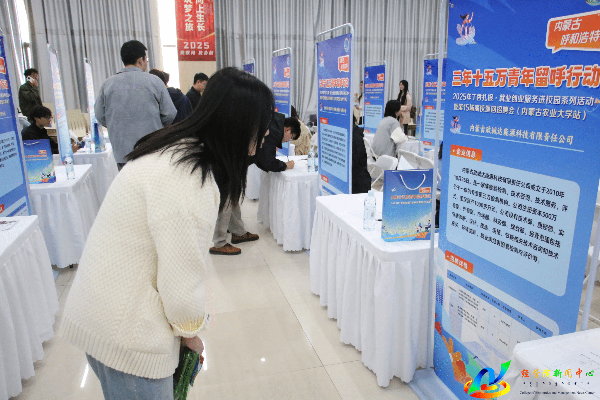 为深入贯彻“就业就是最大的民生”的重要指示精神,助力2026届毕业生明确职业方向,精准对接优质就业资源,提供持续有效的帮扶。9月21日上午,我校与呼和浩特市人民政府联合主办“三年十五万青年留呼行动”2025年丁香扎根·就业创业服务进校园系列活动暨第15场高校巡回招聘会(内蒙古农业大学站),我院学子积极参加。