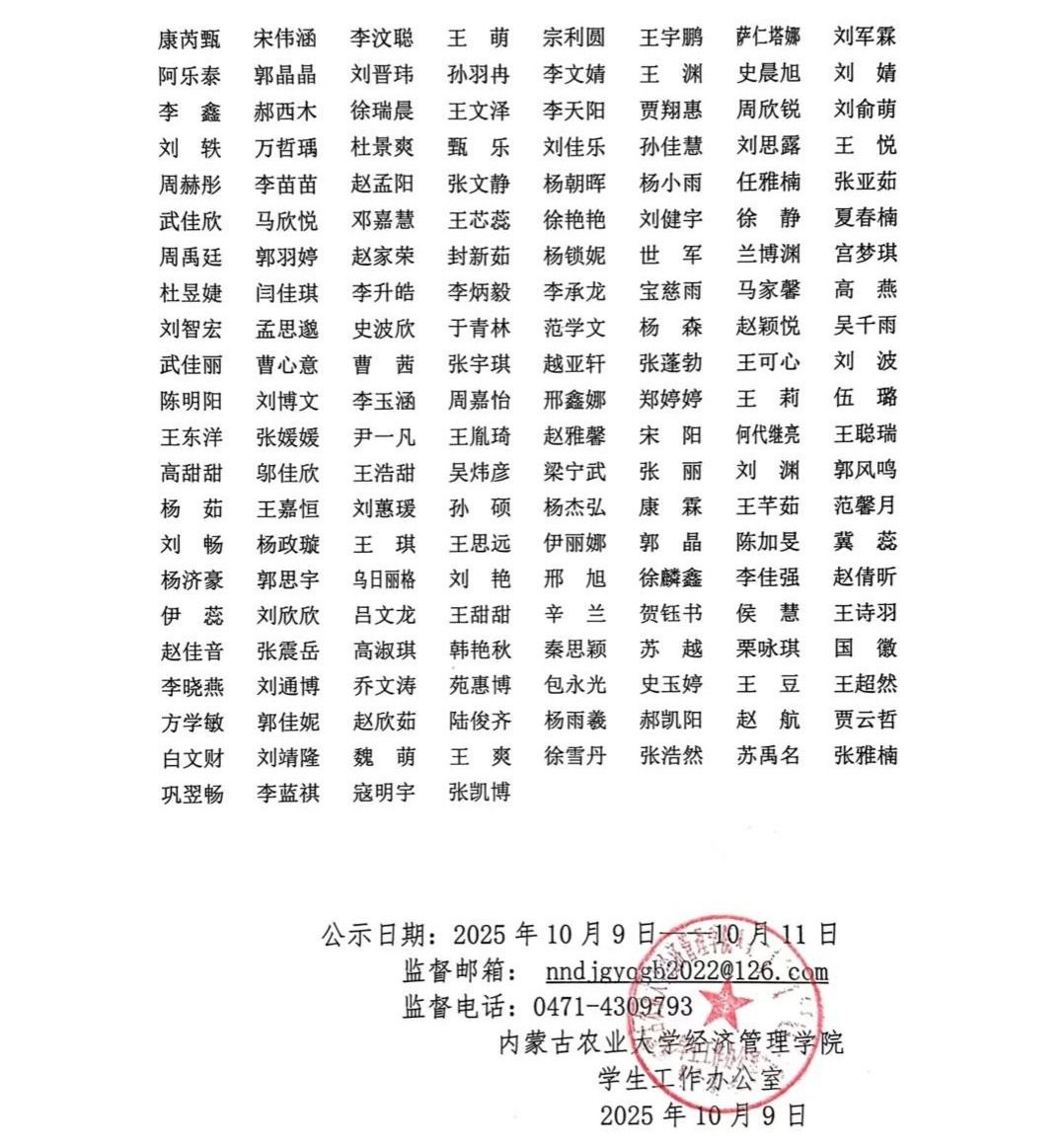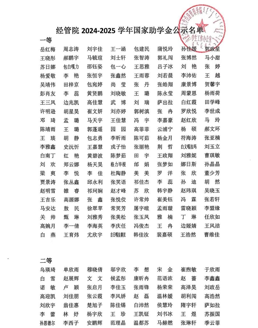 经济管理学院2024-2025学年国家励志奖学自治区励志奖学金公示表
