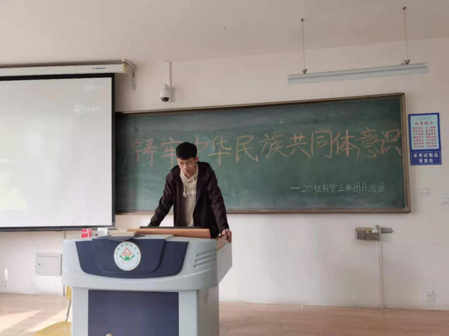 为加深我院学生对中华民族共同体意识的理解,引导同学们自觉维护民族团结。3月11日上午10:00,2020级财务管理三班于南教305开展“铸牢中华民族共同体意识”主题团日活动,班级团支书组织活动,全班同学积极参加。