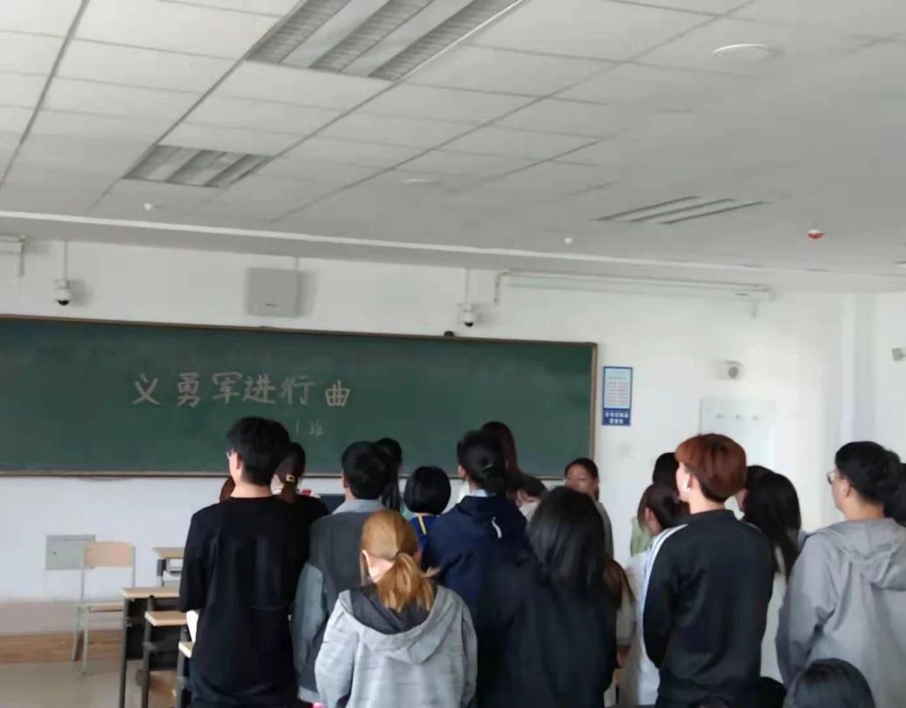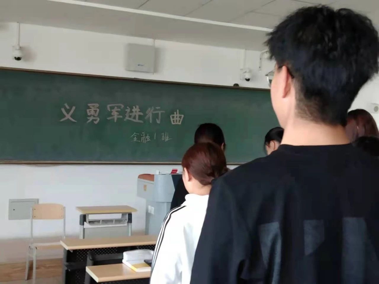 活动中,团支书带领金融一班全体同学集体歌唱《义勇军进行曲》、《保卫黄河》等经典歌曲,生动展现了不同时代的中华儿女共同的顽强不屈的精神和铮铮铁骨,歌颂中国共产党为国家为人民为民族建立的丰功伟绩,号召大学生向党致敬,奋发图强。同学们敞开心扉,纵情放歌,唱出了爱党爱国主旋律、唱出了奋进新时代的最强音。