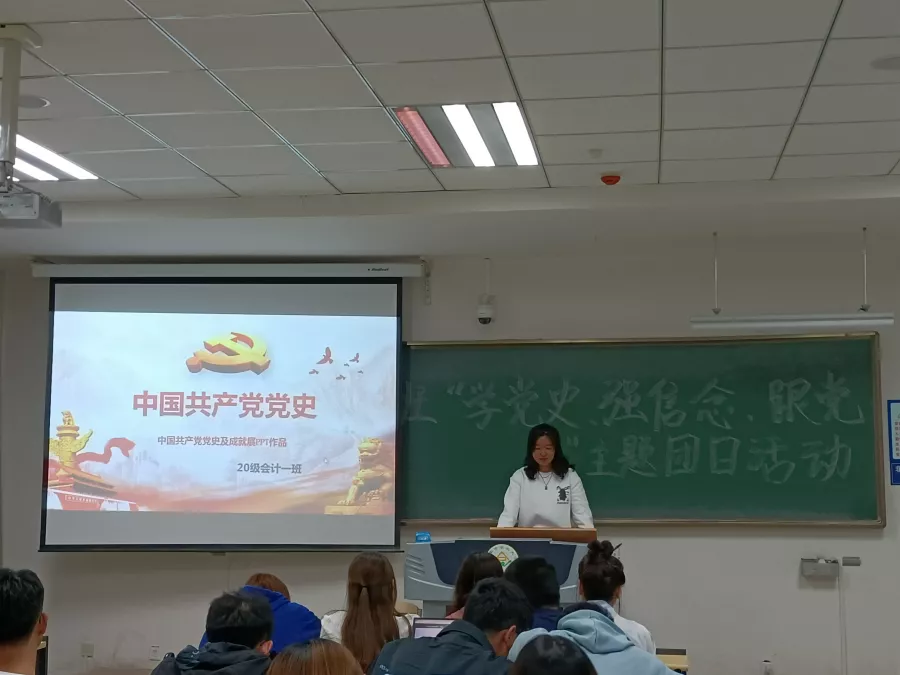 活动中,团支书通过PPT图文结合向大家宣传党的发展历史,共同观赏相关视频,在同学们发表自己的理解和进行相关诗歌朗诵后,对党史精神进行了总结,号召同学们充分利用时间,学习党史,不忘初心,牢记使命。