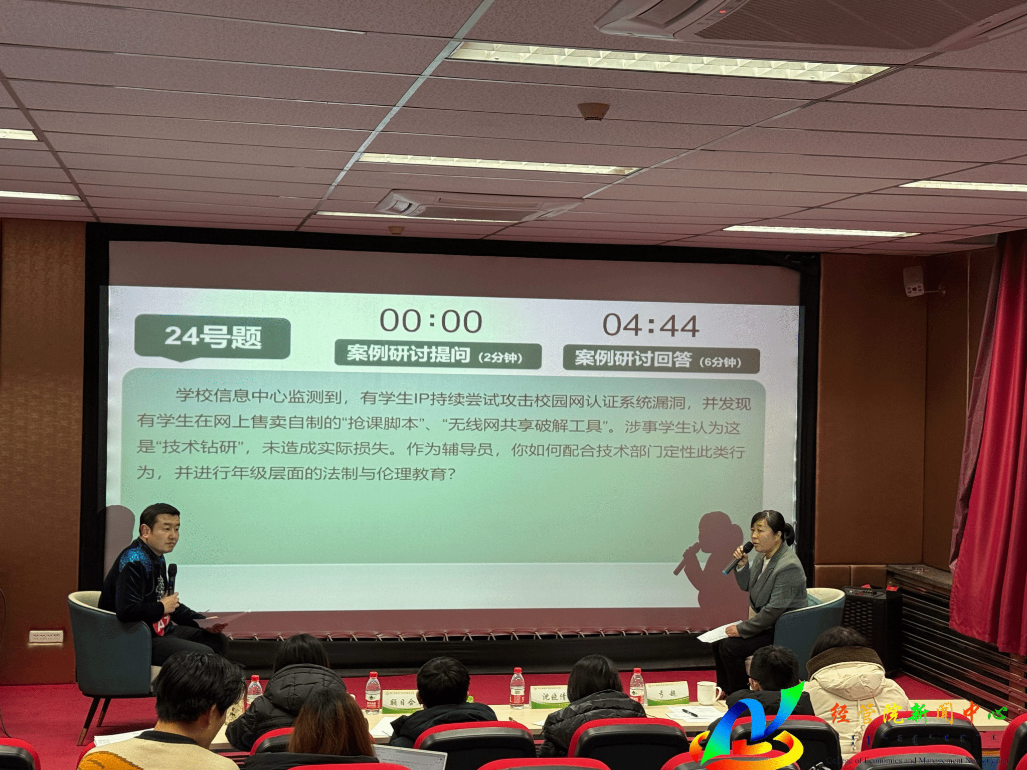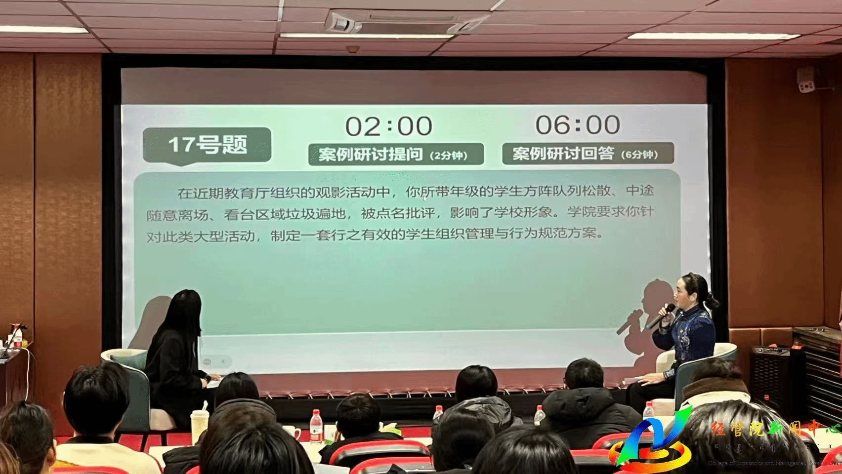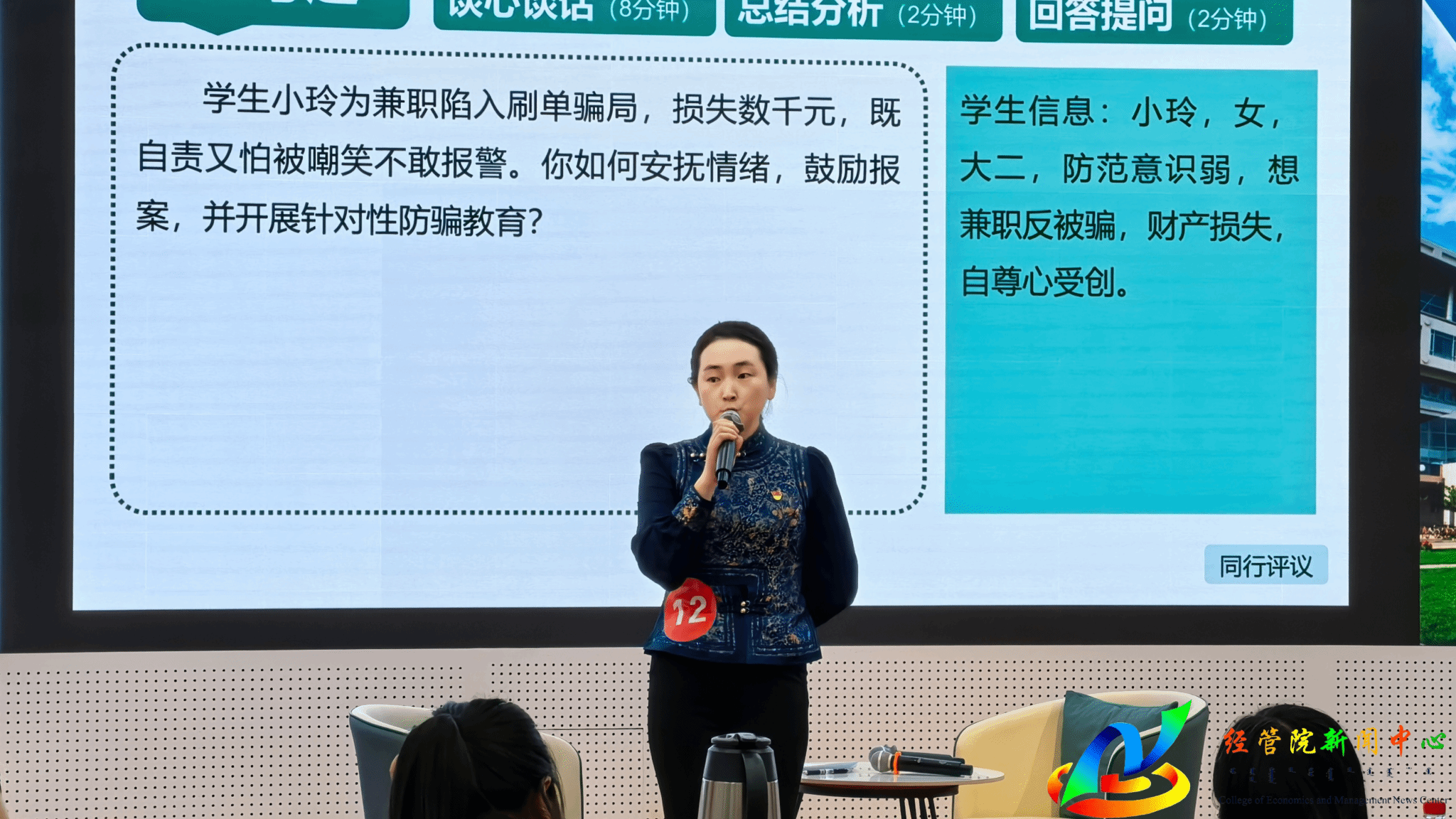 在11月30日进行的闭卷笔试中,我院全体专职辅导员认真备赛、诚信应考,展现了良好的理论素养;在12月12日进行的案例研讨与谈心谈话实战环节中,白灵老师和苏宁巴乐老师作为学院推荐代表参赛。比赛过程中,随机抽取案例与情景分析题,两位老师思路清晰、研判准确、应对得当,充分运用学生工作理论与方法,深入剖析问题本质,展现了高超的问题解决能力、应急处理能力和沟通引导艺术,其表现赢得了专业评委与同行评议员的一致好评,最终从众多参赛者中脱颖而出,为学院赢得了荣誉。