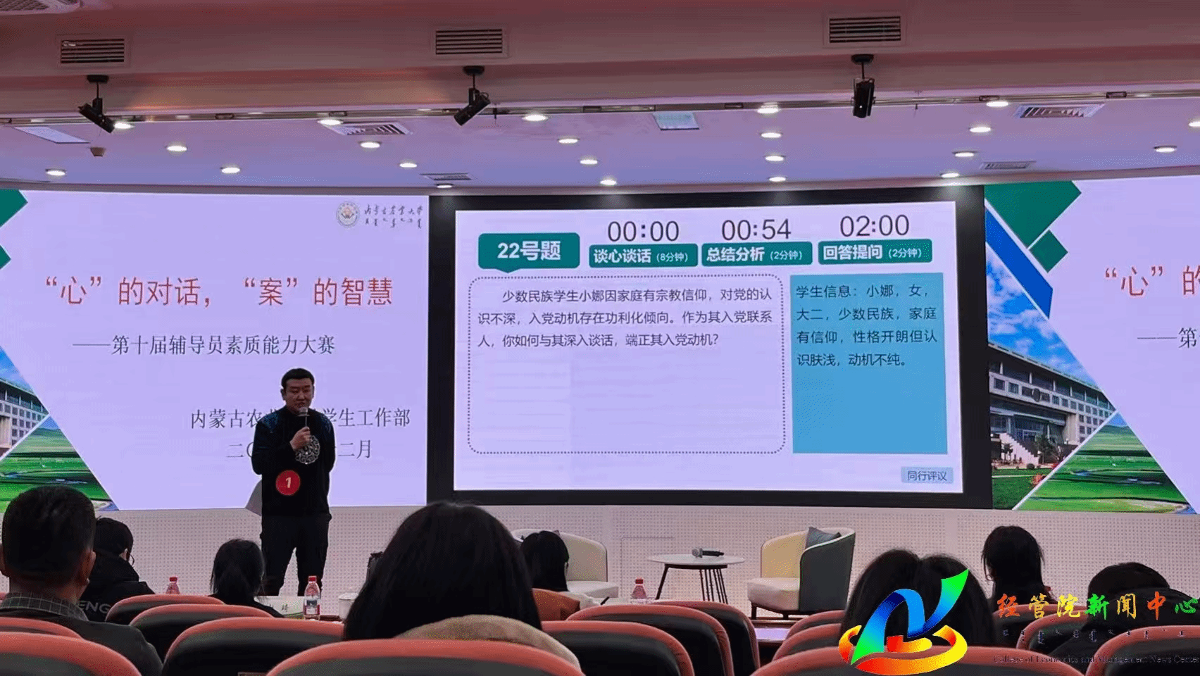 内蒙古农业大学第十届辅导员素质能力大赛于11月30日至12月12日举行,旨在深入学习贯彻习近平新时代中国特色社会主义思想,落实立德树人根本任务,推动辅导员队伍专业化、职业化发展。大赛紧密围绕“时代新人铸魂工程”要求,设基础理论知识测试、案例研讨与谈心谈话三大环节,全面、综合考察辅导员的理论水平、专业能力、实践技能以及对学生的教育引导能力。