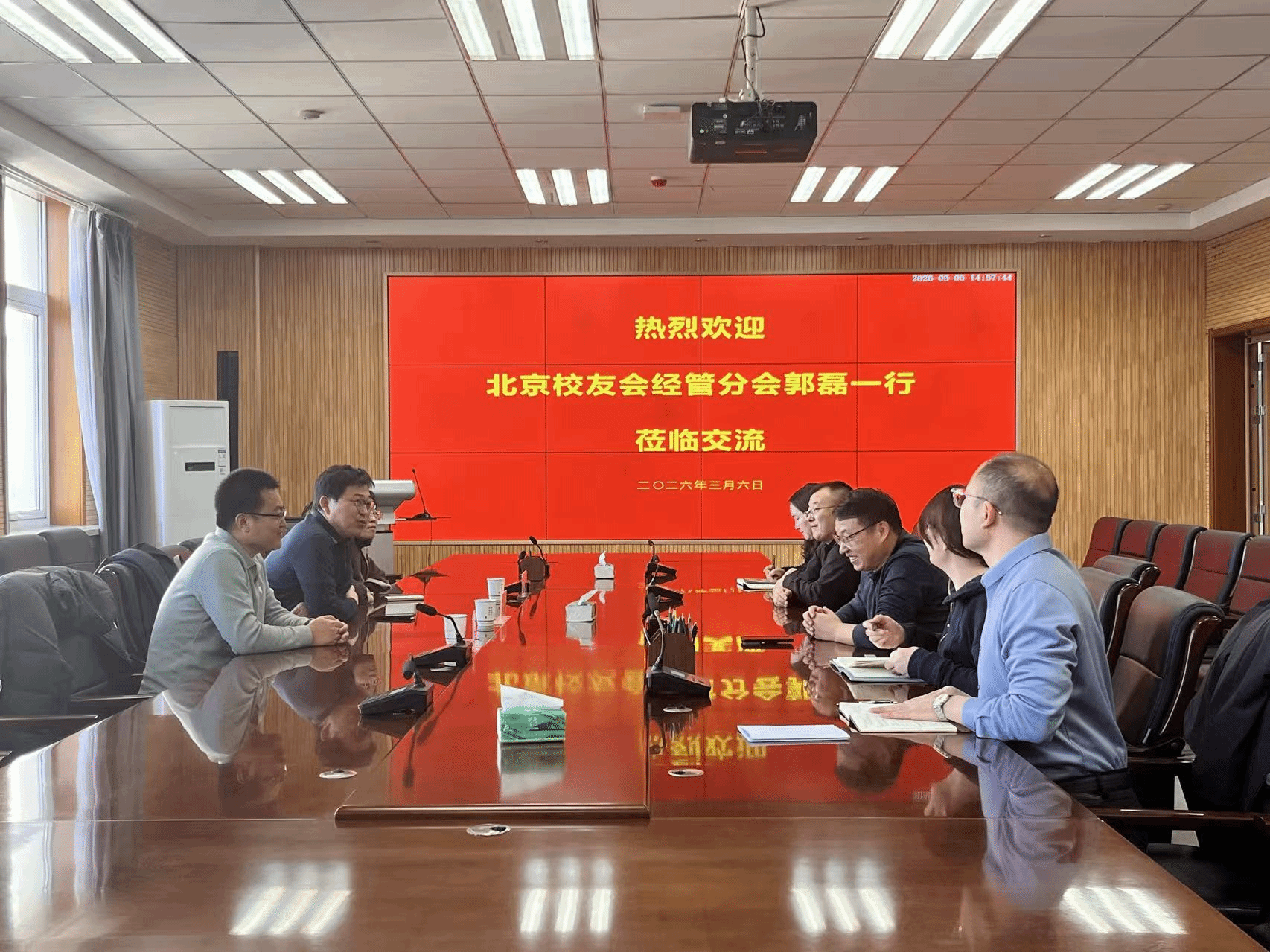 3月6日下午4:00,北京校友会秘书长郭磊、北京校友会经管分会秘书长孙敏及副秘书长王永平一行返校,与学院领导班子举行座谈交流。