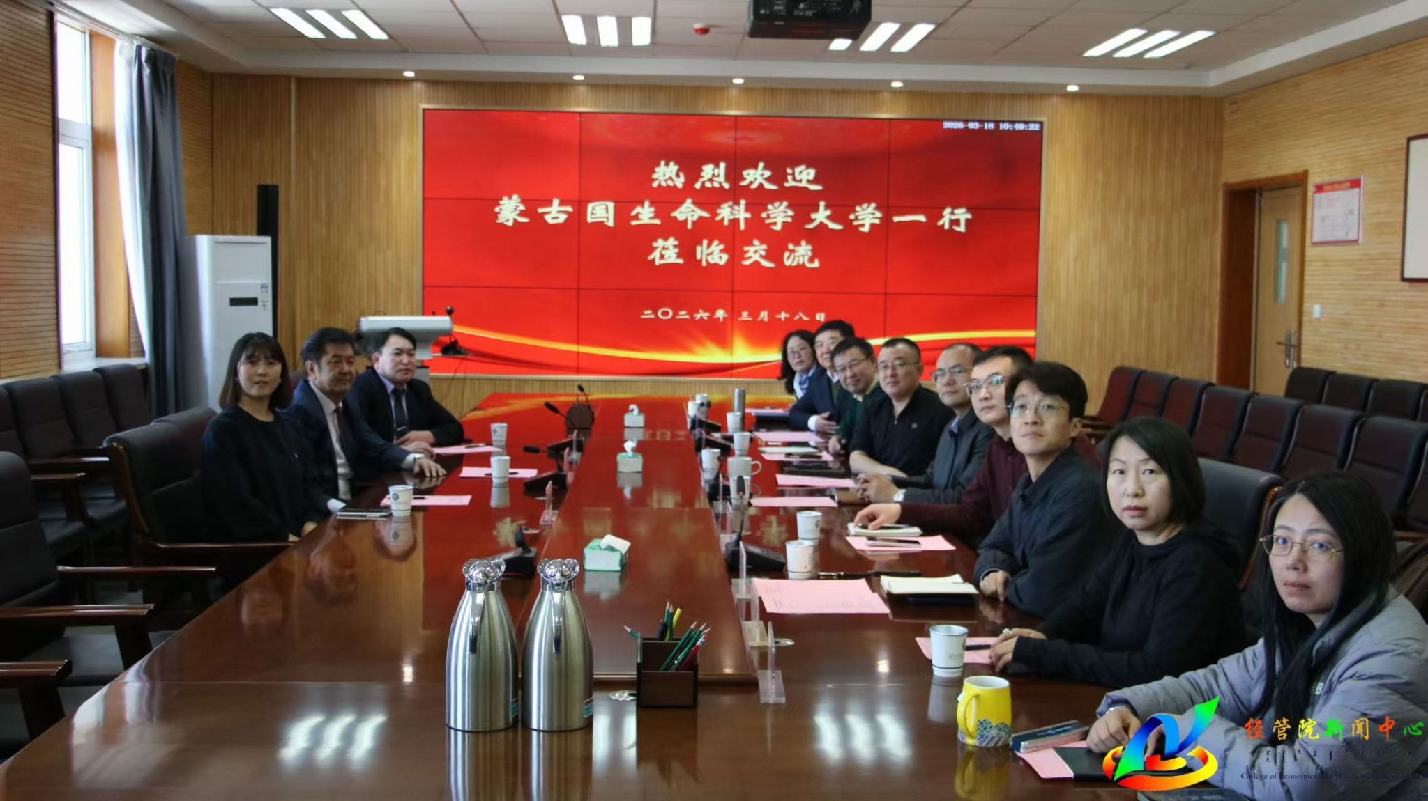 2026年3月18日上午,内蒙古农业大学经济管理学院与蒙古国生命科学大学经济与商学院在经济管理学院519会议室举行座谈交流会。学院院长柴智慧主持会议,张建军副院长、乔光华教授、杜富林教授等领导专家,人文与社会科学学院副院长刘贺贺,蒙古国生命科学大学科研与国际合作事务副校长额·图穆尔托格托赫、经济与商学院教授伊达木,内蒙古教育出国留学服务中心白丽晶等出席会议。